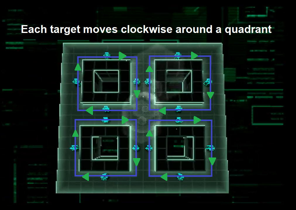 - Guards begin to move when the level description shows up, this can be used to have the correct guard walk closer to the goal before the timer starts.