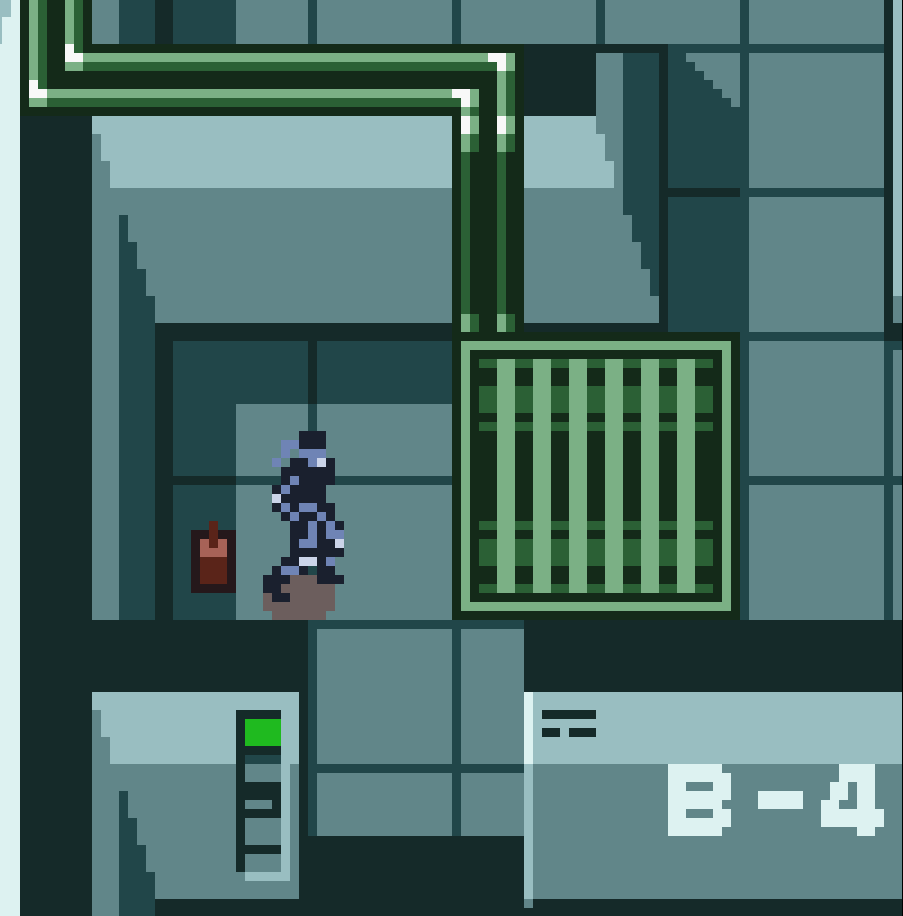 • Off the wall, Snake's shadow overlaps with the light green panel