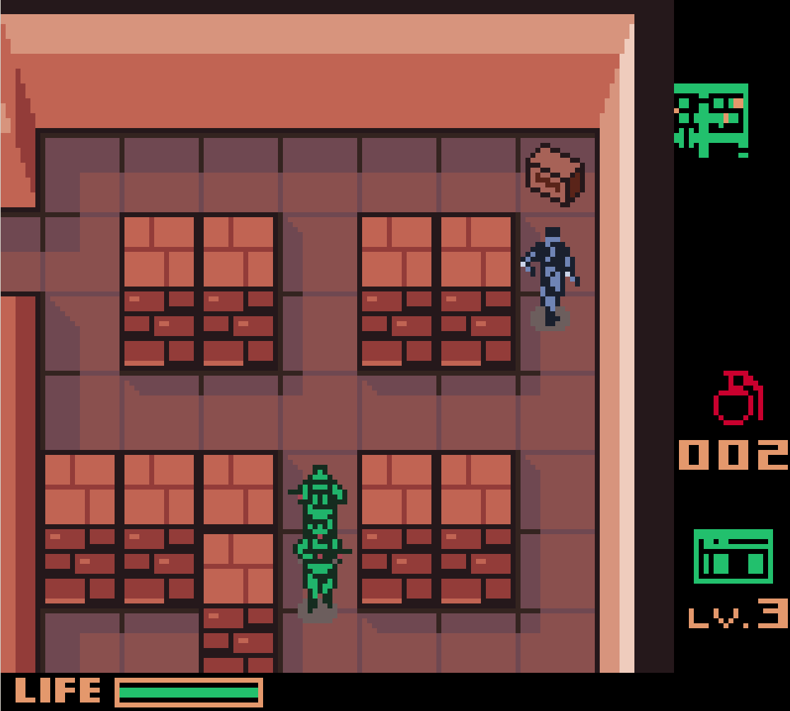 - Second trip of Dark Room (going left): Stay in room after killing Snake, go to bottom wall, wait for the 2nd long synth note or the percussion track beginning its 2nd set of taps, or about 3 seconds of waiting. Run to left edge of 2nd laser box and wait for the percussion to begin its 4th set of percussion tracks, or about 4 seconds of waiting.