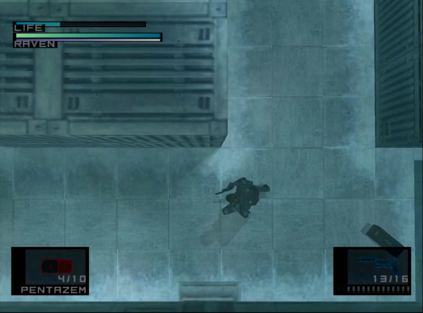 - Roll into the Otacon cutscene when you turn the corner.