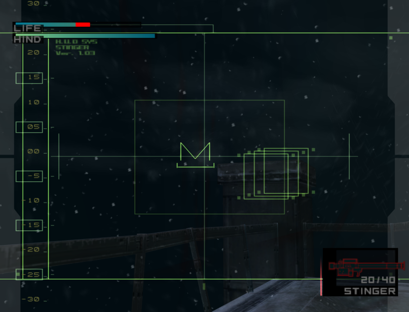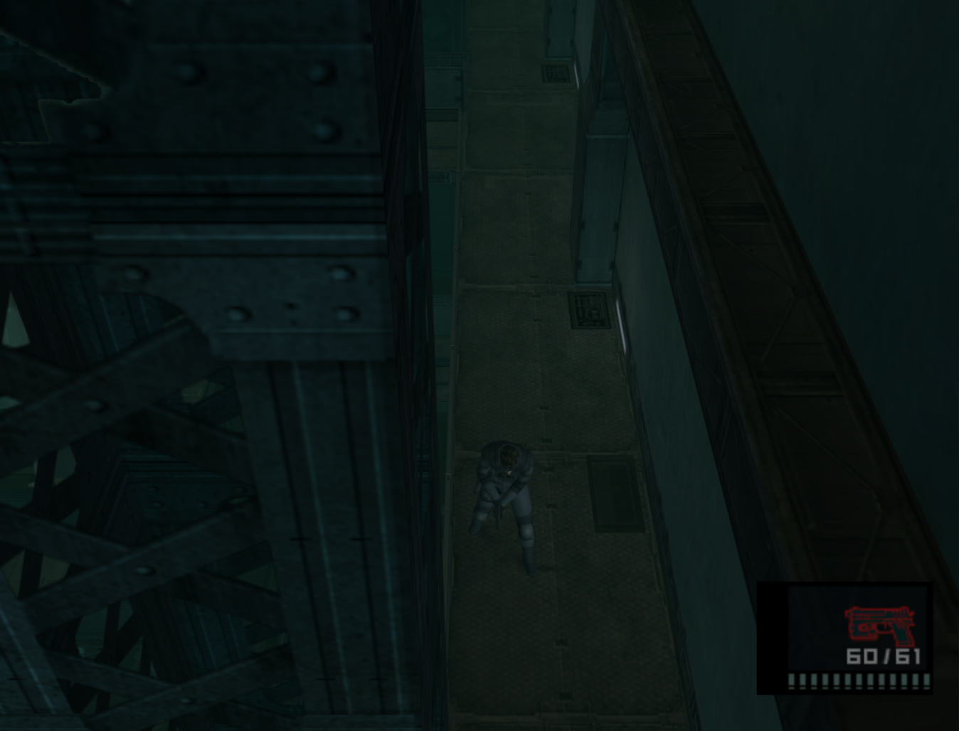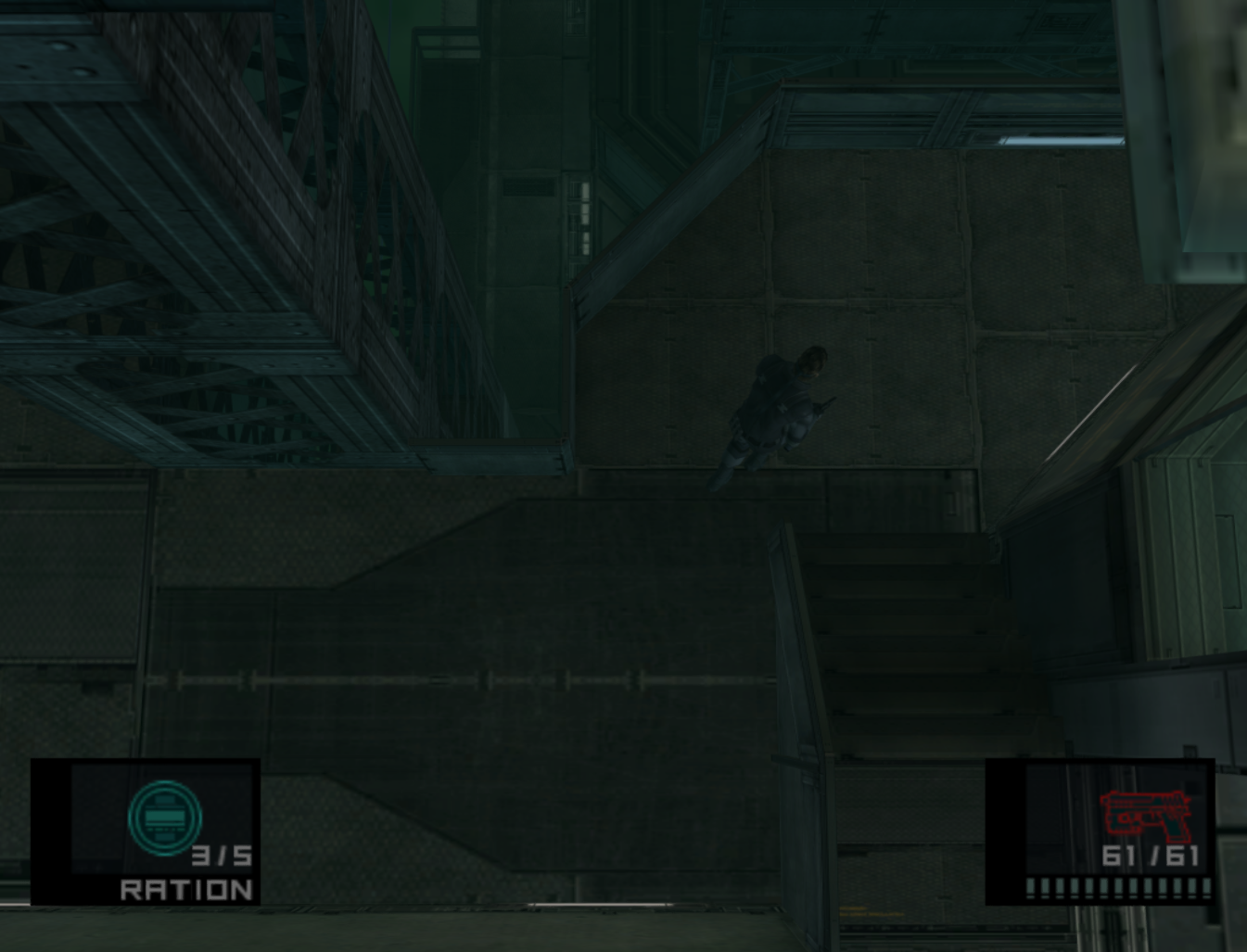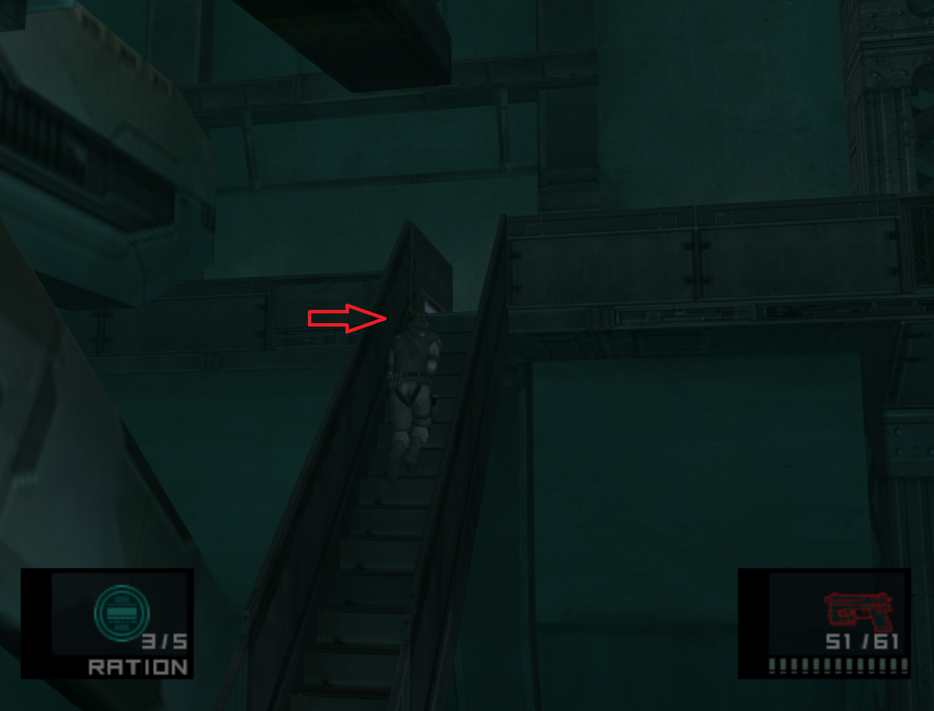 - After the first Otacon codec, run up the stairs. Once Snake is on the catwalk, FPV and headshot the guard at the railing.