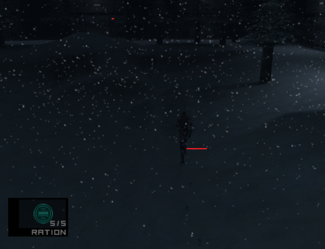 • Press B to exit the call, hold left on Dpad and start. Quick change to ration. Once Snake's back is leaning against the Door, Press A.
